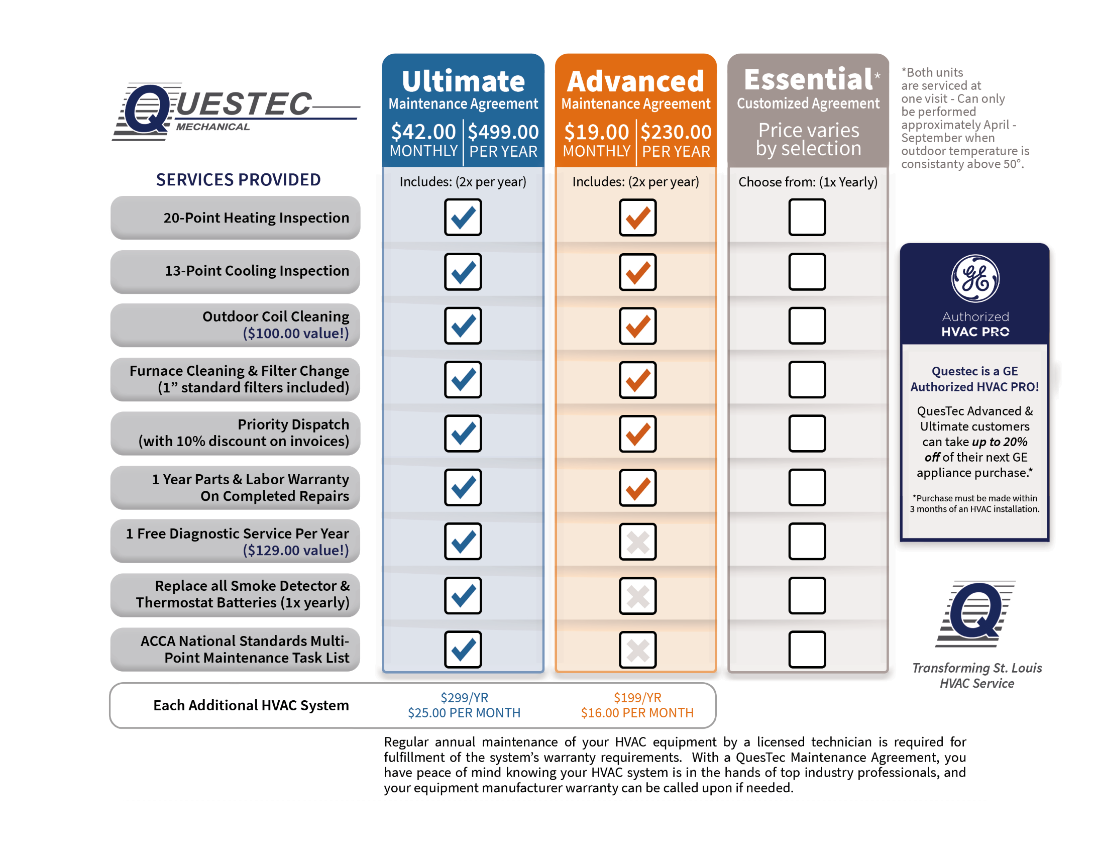 QuesTec Residential HVAC Maintenance Plans: